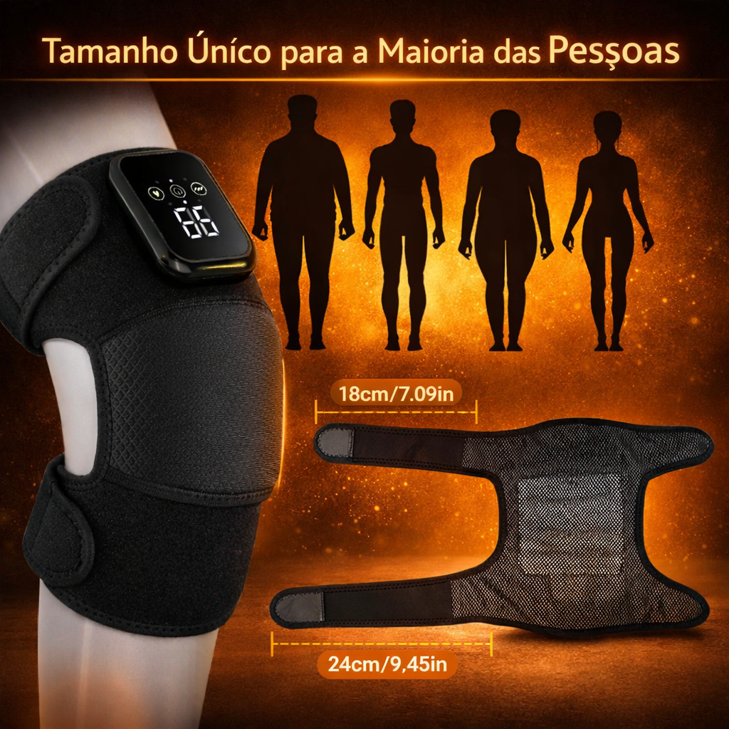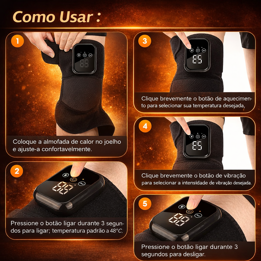 Combina aquecimento e vibração para proporcionar uma sensação de conforto e relaxamento na zona do joelho.
